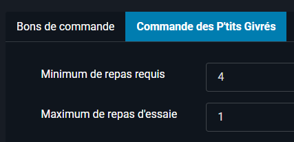 Nous avons ajouté une configuration à la création du menu qui permet de mettre un prix pour un repas complet. Comme les repas sont toujours vendus en trio, afin d'éviter de devoir changer le prix de tous les plats, lors d'un changement, il était plus simple de configurer le prix directement dans le menu.