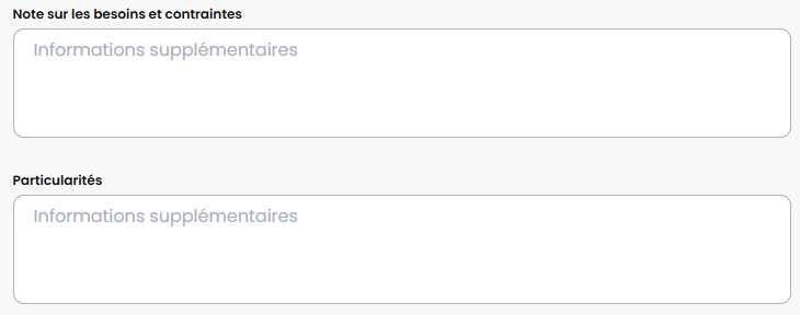 Nous avons ajouté de grands champs texte, dans les informations générales, permettant de mettre de l'information concernant les besoins et contraintes ainsi que des particularités au sujet du client.