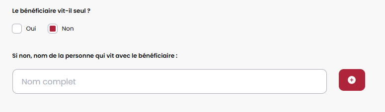 La possibilité d'indiquer si le client vit seul ou non et si non, pouvoir indiquer les noms des personnes qui vivent avec lui.