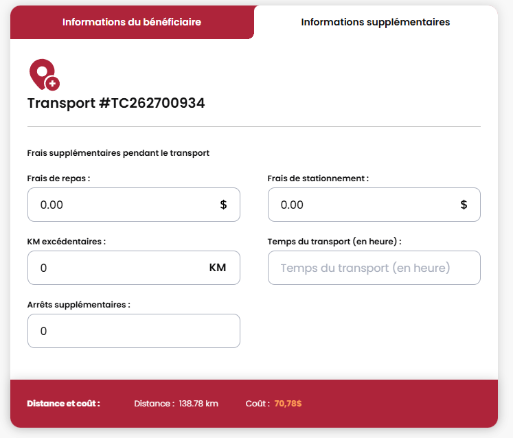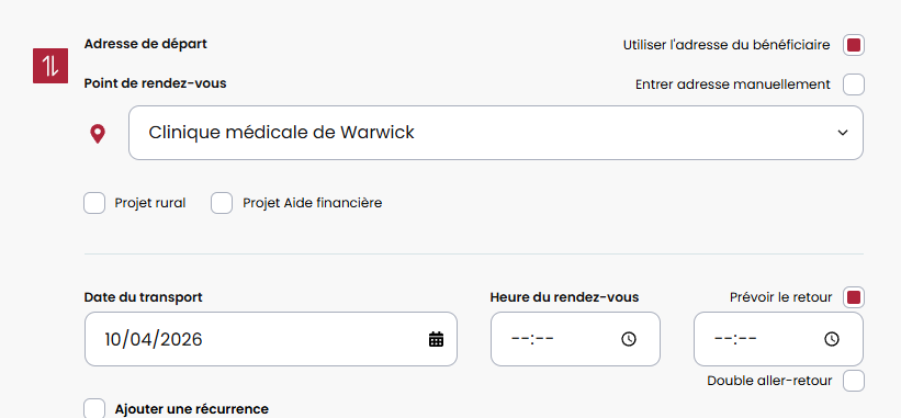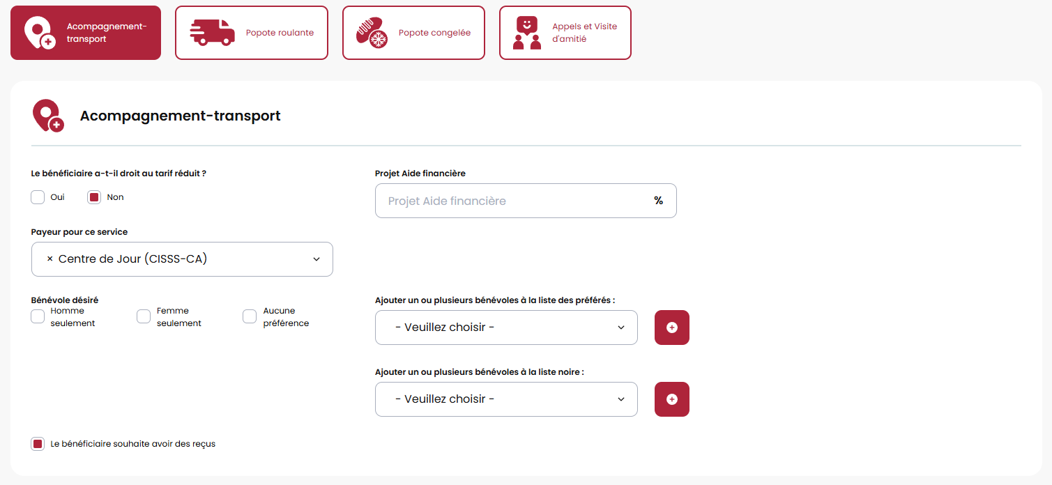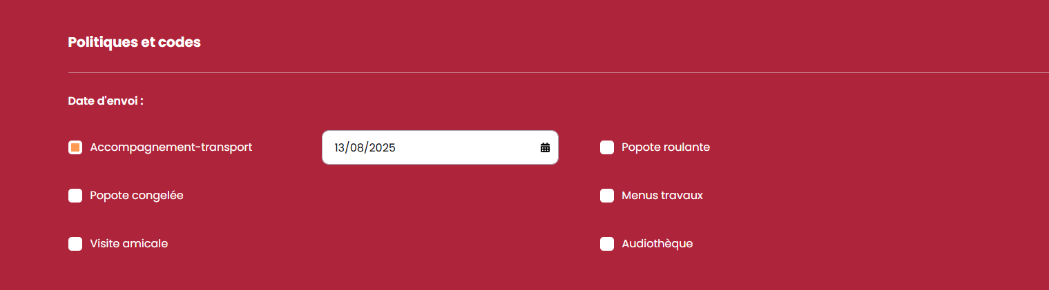 Nous avons ajouté des options cochables pour la mobilité et le transport du client.
