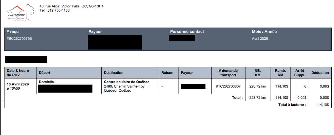 Le même système est utilisé pour les remboursements des chauffeurs pour la livraison de la popote roulante.