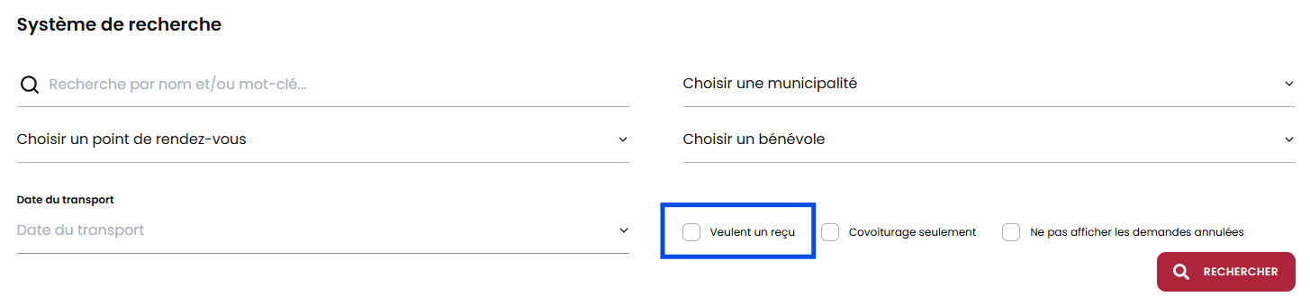 Pouvoir sortir la liste complète de toutes les demandes de transport. Il est également possible de filtrer par :