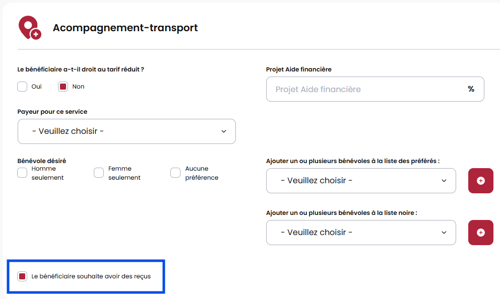Les reçus : Pouvoir indiquer si le client souhaite avoir des reçus. Nous avons ensuite créer un système de reçu que vous pouvez voir dans le service des transports, plus bas.