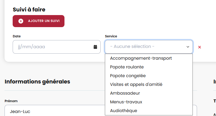 Nous avons ajouter la possibilité d'indiquer des suivis à faire pour un service choisi. Il est possible d'ajouter un nombre illimité de suivis dans chaque fiche bénévole.