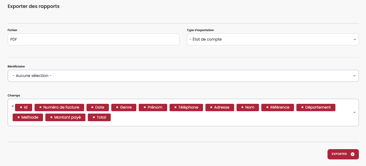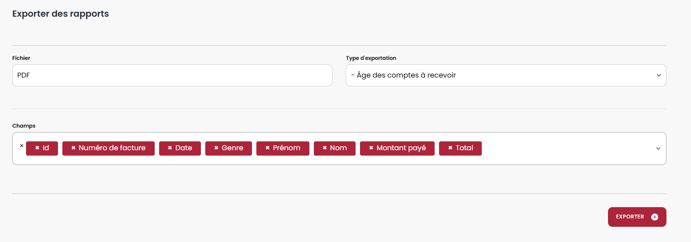 Le rapport des factures peut être filtré :