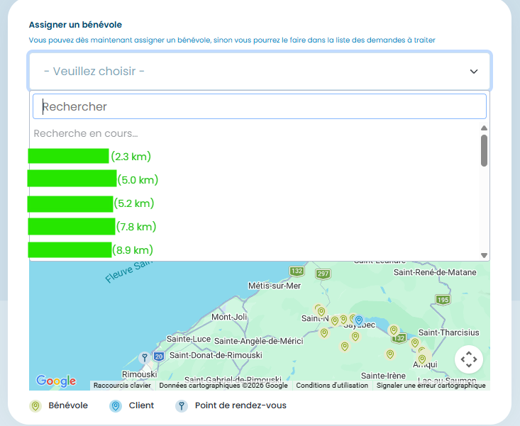 Il faut simplement sélectionner le bénévole et la période. Toutes les livraisons effectuées par le chauffeur pendant cette période afficheront, dans le bas.