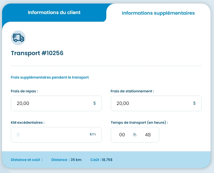 Nous offrons normalement une indemnisation pour le chauffeur au kilométrage. Afin de s'adapter au besoin de notre client, nous avons ajouter la possibilité d'avoir une indemnisation avec un montant fixe + un montant au kilométrage ou un montant fixe + un montant par cabaret livrée.