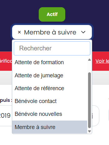 - Type de bénévole : Actif ou Inactif