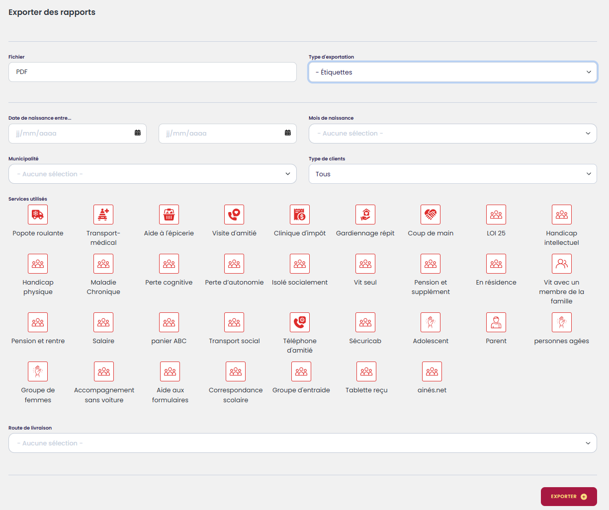 Pouvoir sortir la liste complète de toutes les demandes de transport. Il est également possible de filtrer par :