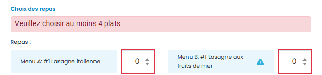 Nous avons ajouté l'option d'ajouter un plat alternatif ponctuel. Lorsque le plat principal contient du poisson ou un allergène, il est possible d'ajouter un plat alternatif en cliquant sur un bouton. Le système attribuera automatiquement le plat alternatif aux clients qui n'aiment pas le poisson ou qui ont des allergies compatibles avec les allergènes duplat.