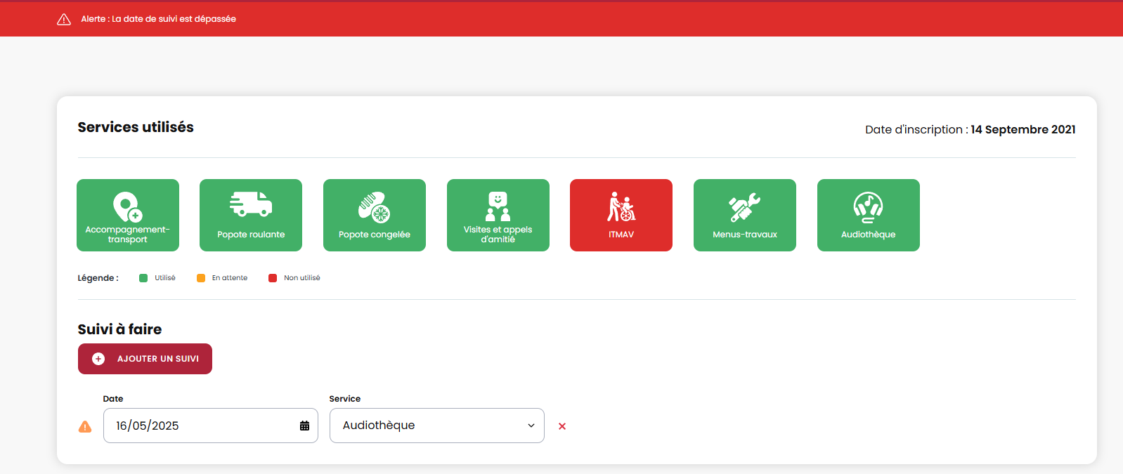 Nous avons ajouter la possibilité d'indiquer des suivis à faire pour un service choisi. Il est possible d'ajouter un nombre illimité de suivis dans chaque fiche bénévole.