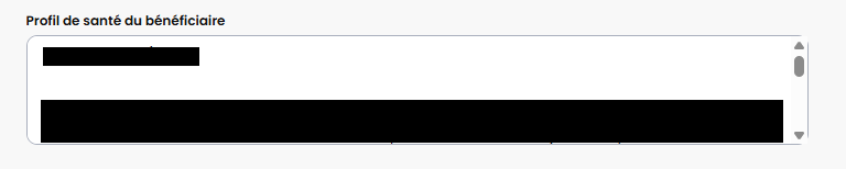 Nous avons ajouté un grand champ texte, dans les informations générales, permettant d'ajouter des informations sur le profil de santé du client.