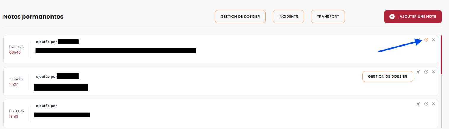 Nous avons ajouté une option permettant de modifier les notes permanentes au dossier.