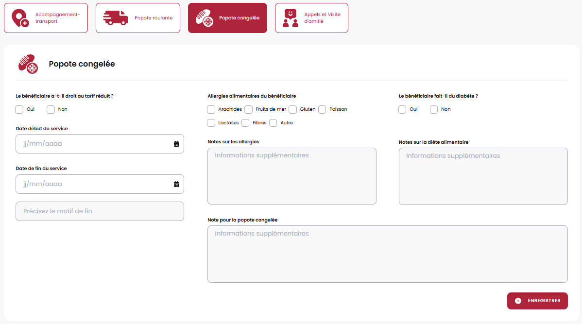 Le volet popote congelée a été créé spécialement pour ce CAB. En effet, normalement les informations pour la popote chaude ou congelée se trouve dans le même volet. À la demande du client, nous avons créé un 2e volet spécifiquement pour la popote congelée.