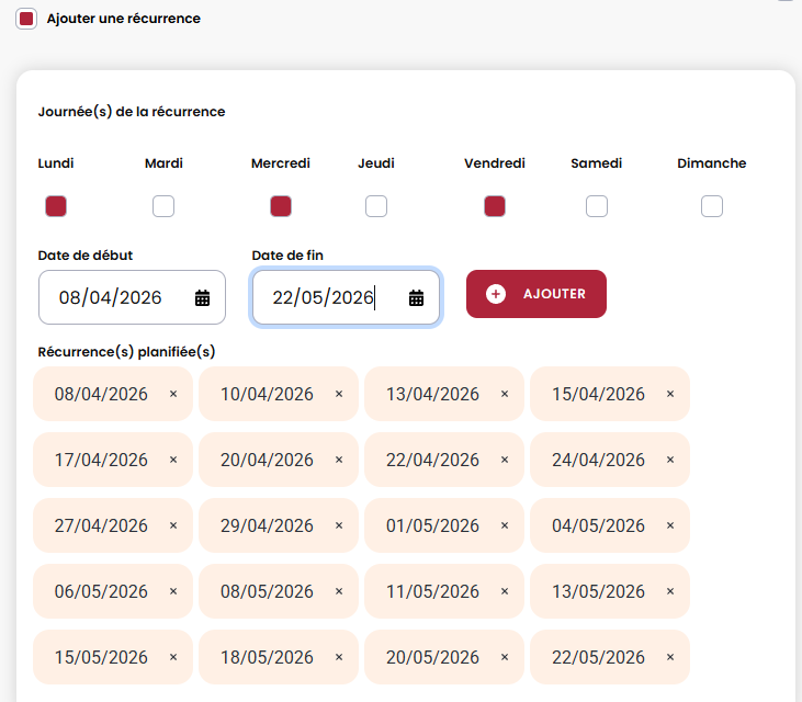 - Disponibilités : seulement les bénévoles disponible le lundi, par exemple.