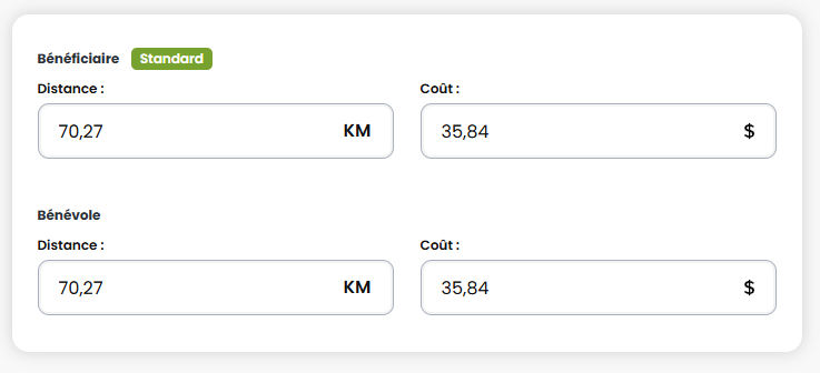 Il faut simplement sélectionner le bénévole et la période et l'ensemble des transports effectués par le bénévole affichera dans le bas avec toutes les valeurs. Il est possible de modifier une donnée simplement en cliquant dessous.