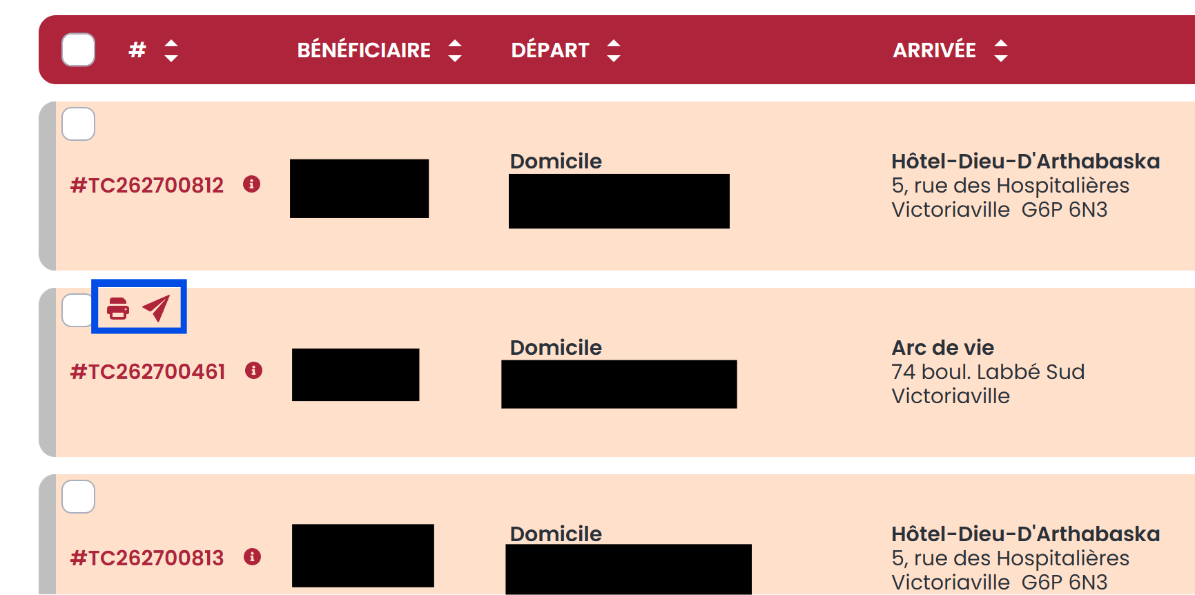 - Liste des demandes de transport en attente de traitement