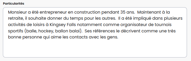Pouvoir ajouter des particularité sur le profil du bénévole.