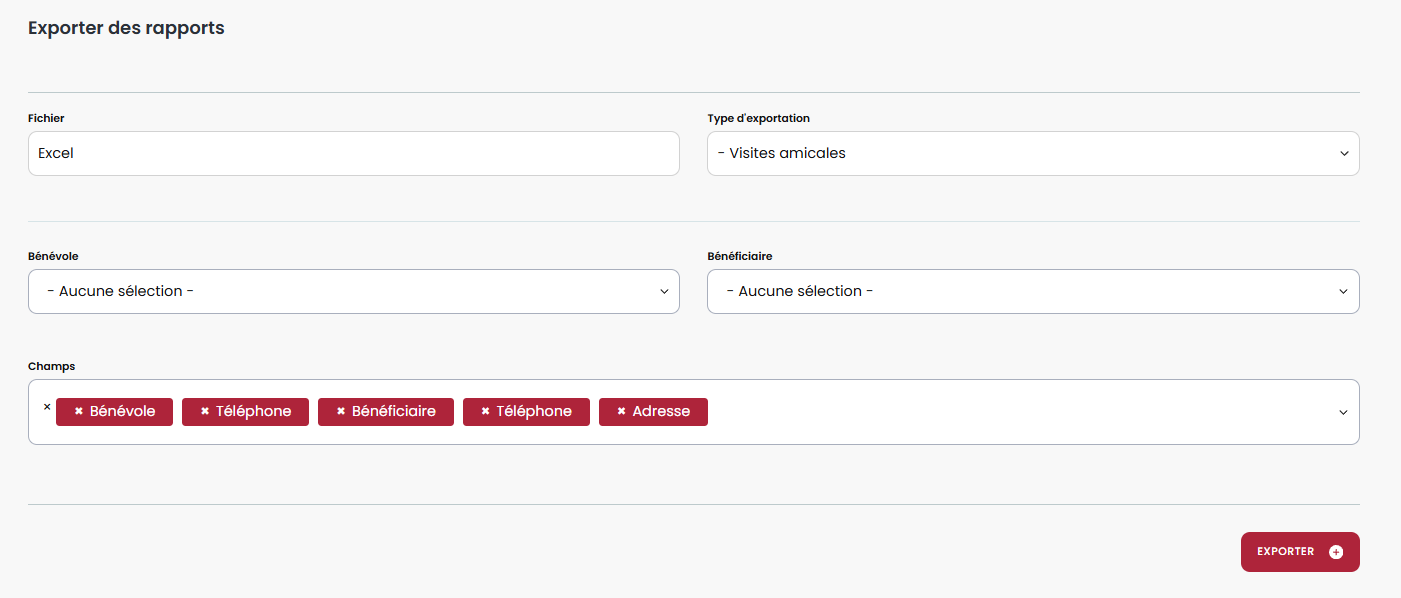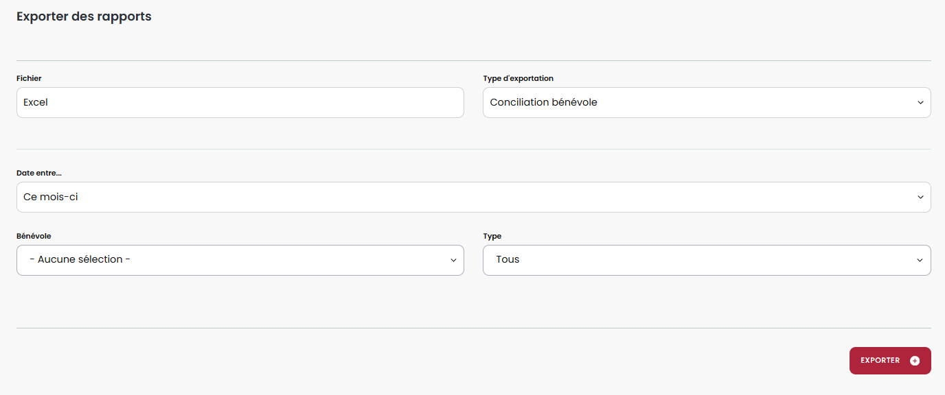 Il est possible de sortir un rapport pour tous les bénévoles ou de les filtrer par :