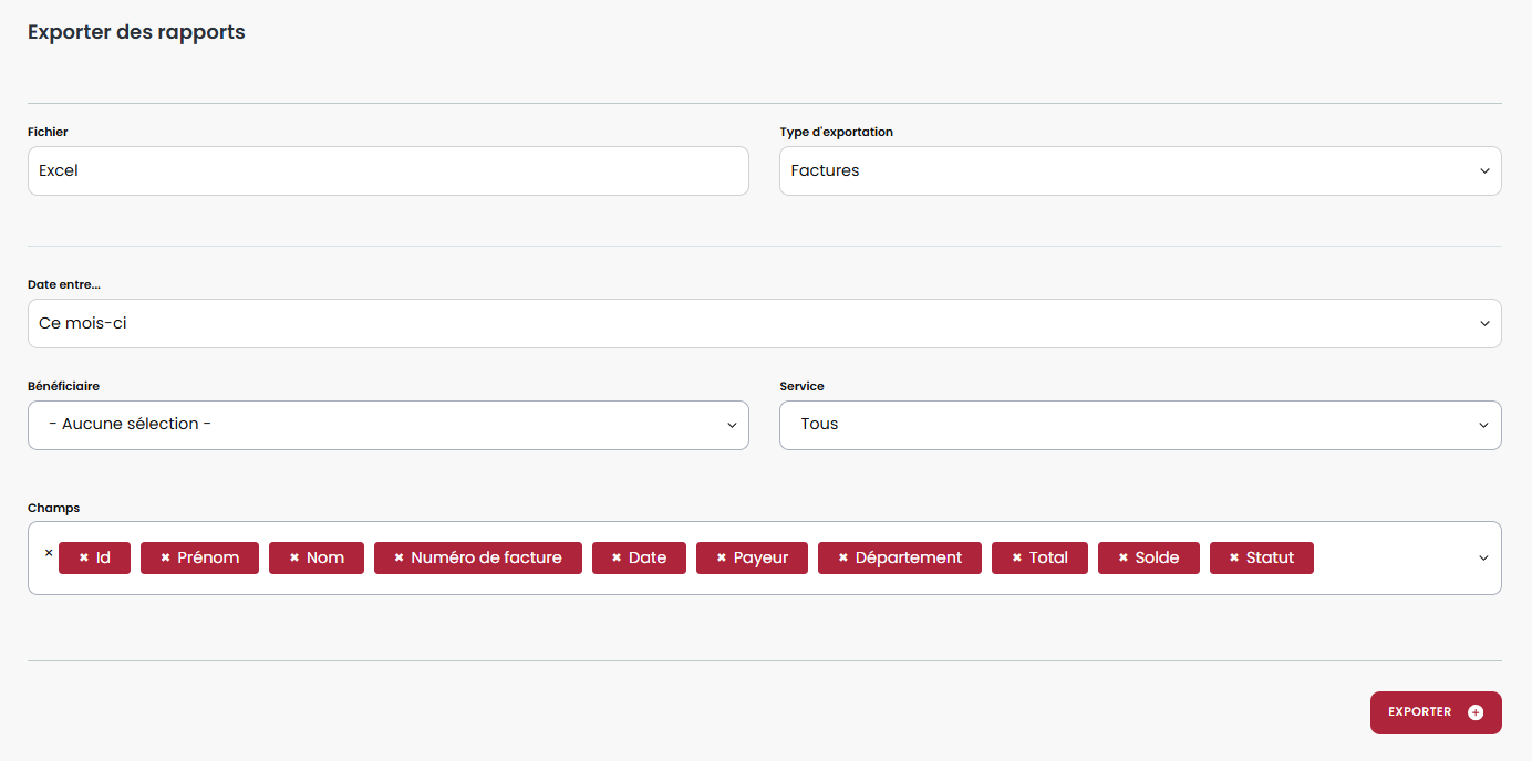 Le rapport des factures peut être filtré :