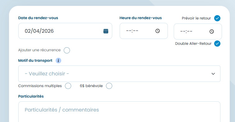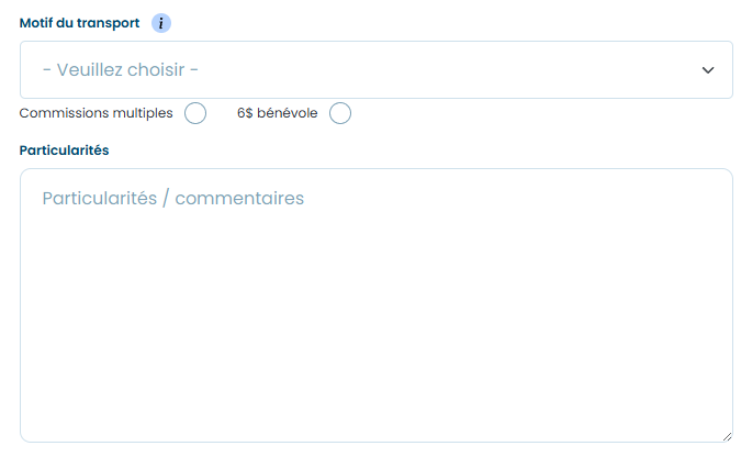 Les volet transport permet d'ajouter des informations spécifiques, utiles pour le service des transports.