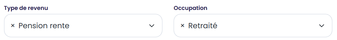 Pouvoir sélectionner, dans un menu déroulant, le type de revenu et l'occupation du client.