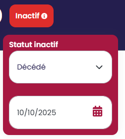 Lorsqu'un client passe du statut Actif à Inactif, il est possible d'inscrire la date d'inactivité ainsi qu'un motif.