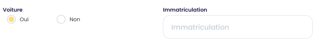 Pouvoir indiquer si le client possède une voiture ou non. Lorsque Oui est coché, pouvoir mettre les informations sur l'immatriculation.
