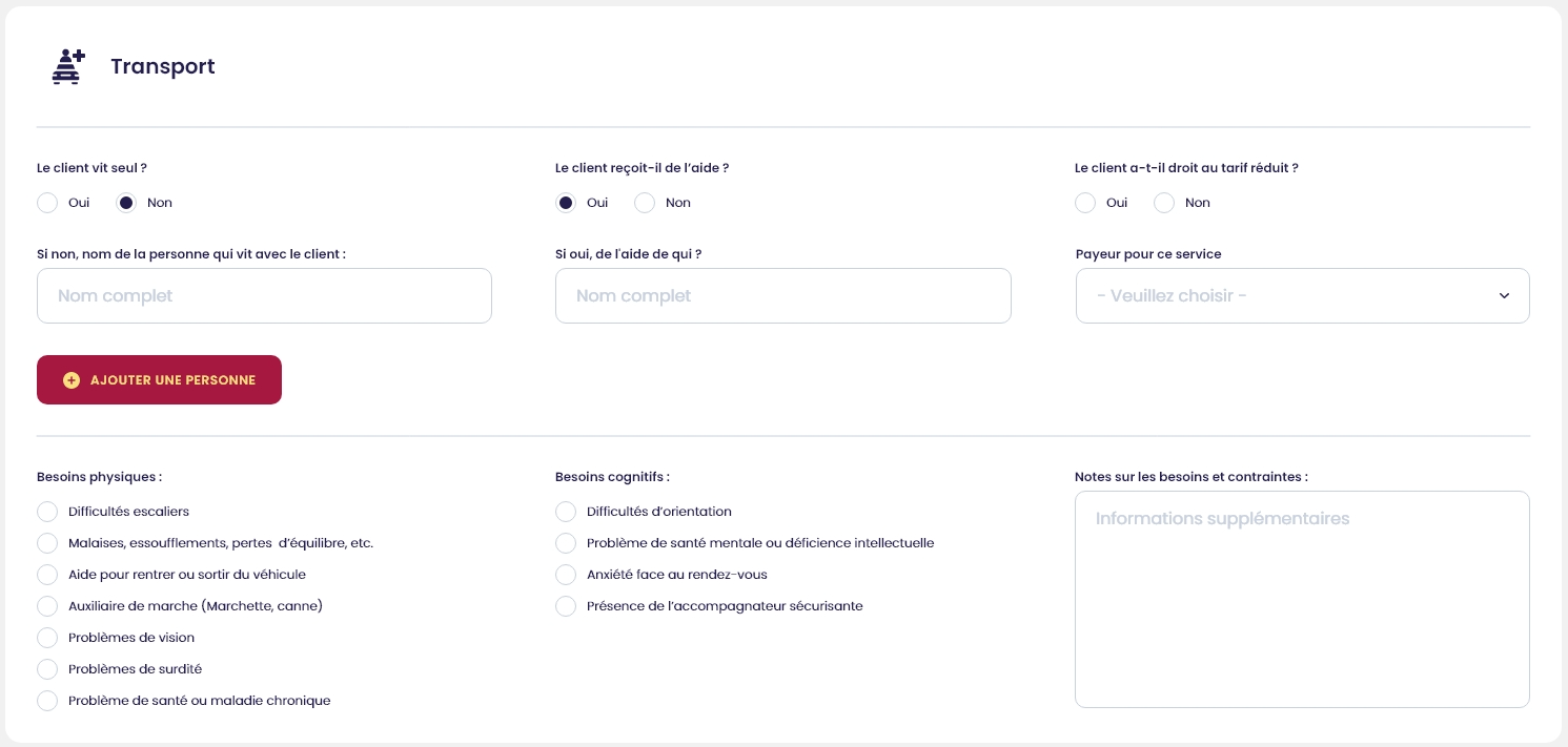 Permet d'ajouter toutes les informations pertinentes pour le service de transport.