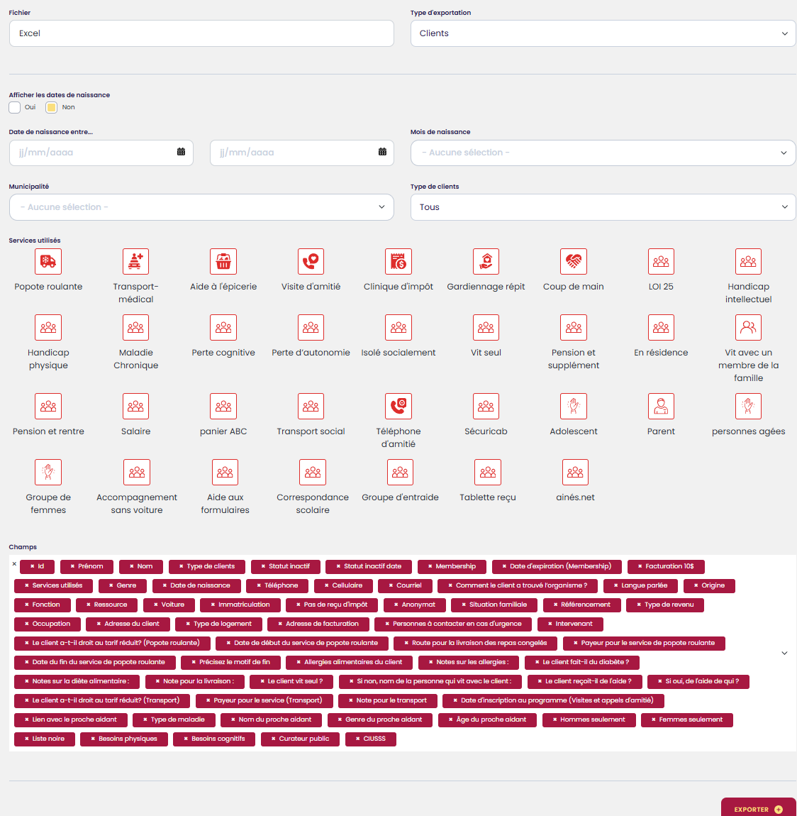 - Exporter en Excel ou en PDF