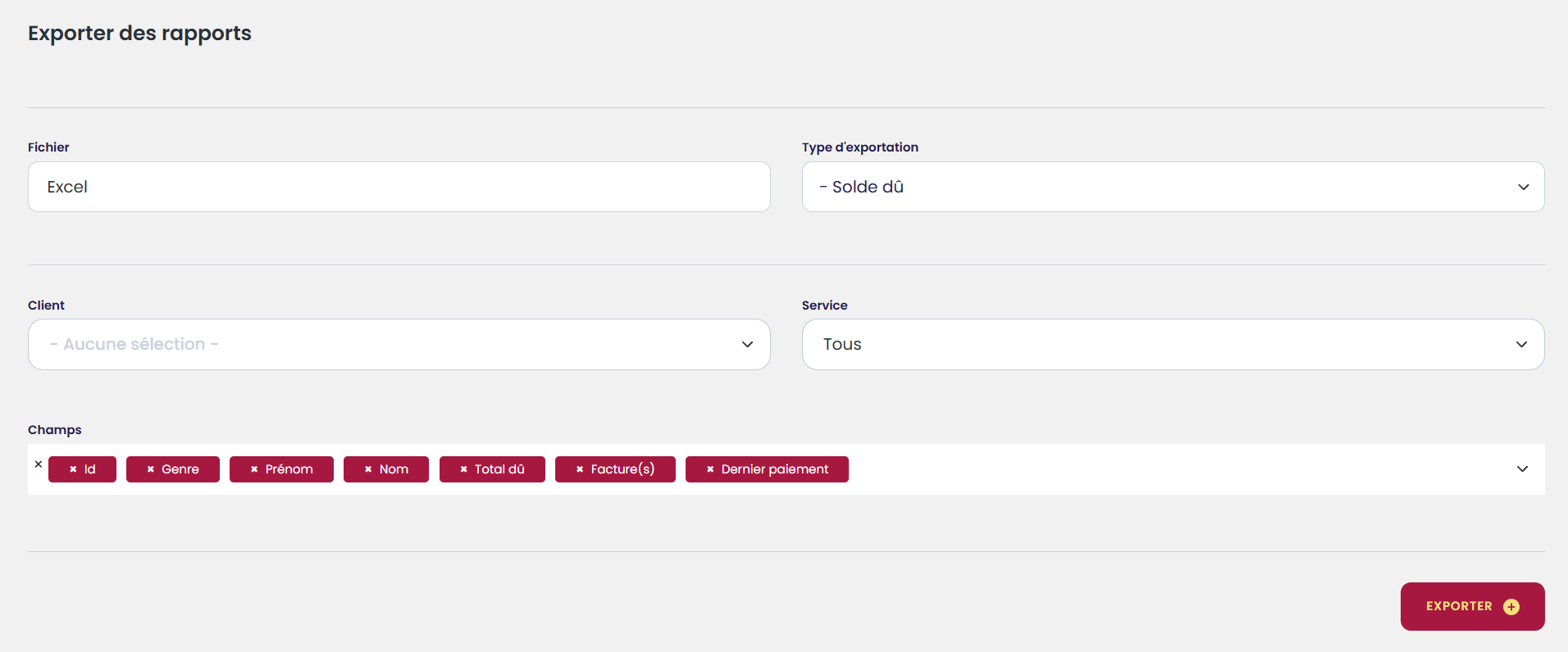 Il est possible de sortir le rapport pour tous les clients ou de choisir un client spécifique.