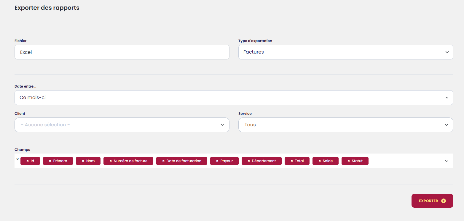 Le rapport des factures peut être filtré :